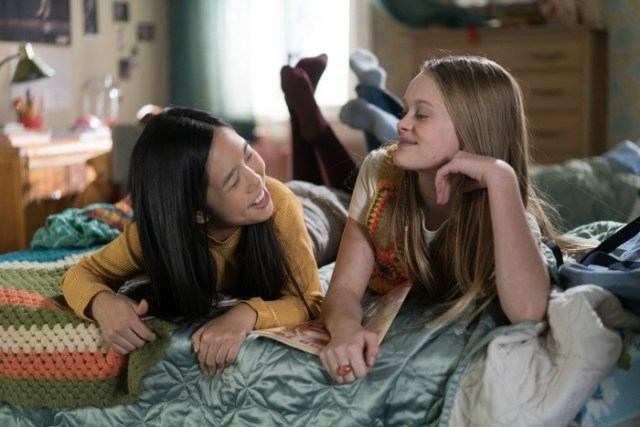 Played winsomely and with a lot of range by Nina Lu (Bunk’d), Ivy deals with these existential questions with the help of her best bud Julie Albright, portrayed with calm confidence by Hannah Nordberg (Dolly Parton’s Coat of Many Colors). Their on-screen BFF-ship captures the warm, easy bond that the characters share in the AG books depicting their adventures.
